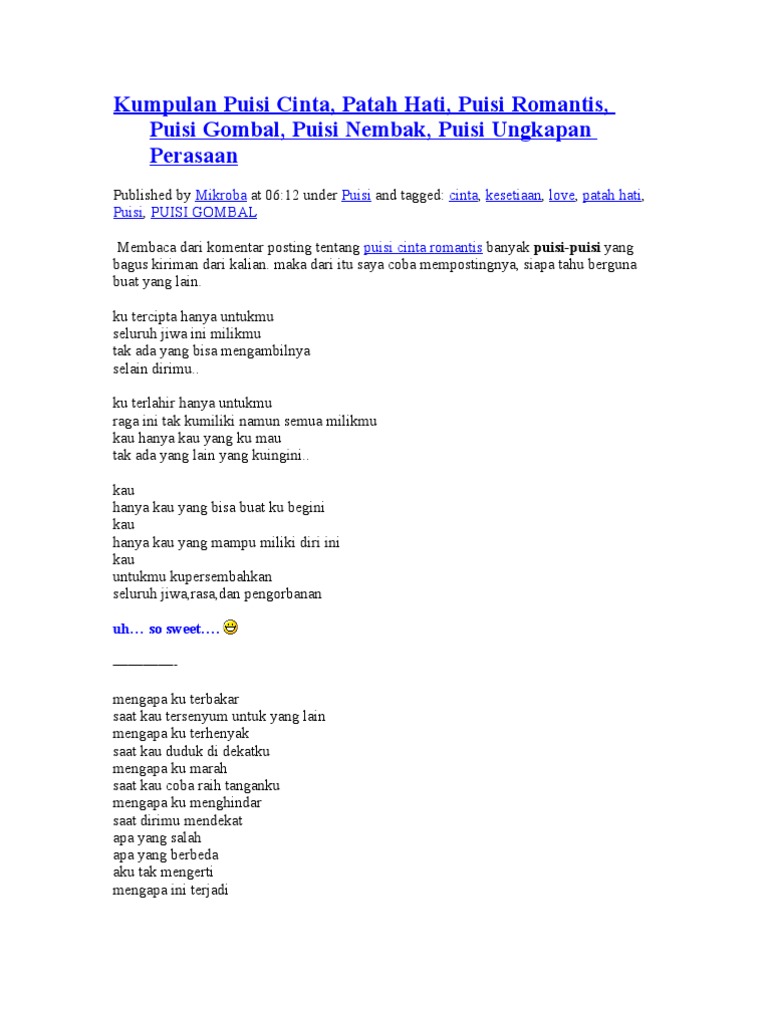 2 Puisi Paling Indah Ungkapan Rasa Hati Paling Dalam Puisi My from 1.bp.blogspot.com We did not find results for: Maybe you would like to learn more about one of these? Check spelling or type a new query.